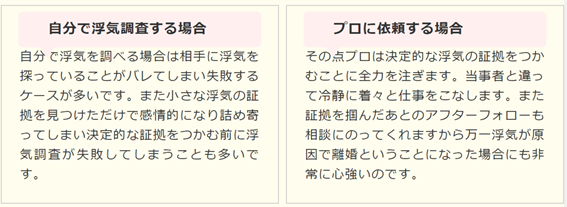 また、私たち探偵へ依頼する事を勧める理由を簡単に比較してご説明します。